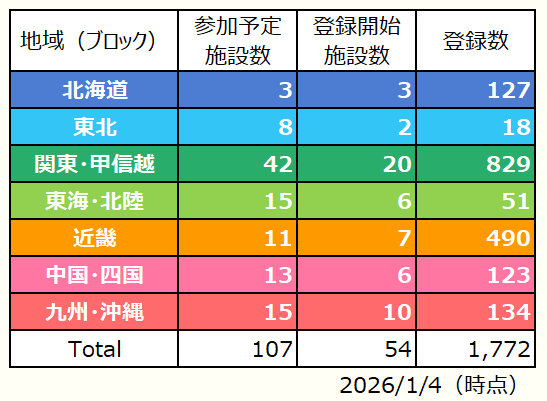 ビーレジ登録状況(2026年1月4日時点)